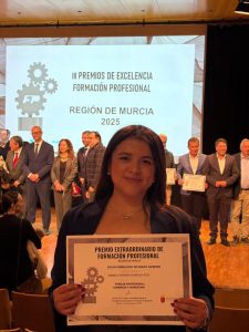 La Consejería de Educación ha otorgado a Gabriela Stefanía Rodríguez Vélez, alumna del Ciclo Formativo de Comercio Internacional del IES Príncipe de Asturias, el Premio Extraordinario de Formación Profesional correspondiente a la Familia Profesional de Comercio y Marketing de la Región de Murcia.