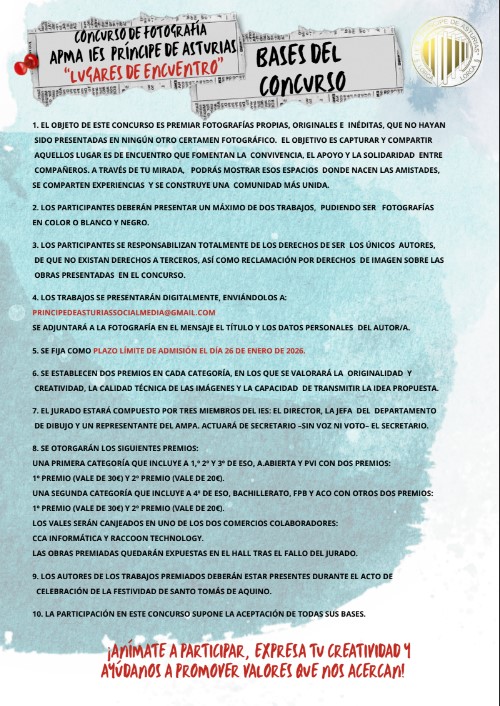 El presente sorteo está organizado por el Departamento de Actividades Extraescolares y la AMPA del IES Príncipe de Asturias.